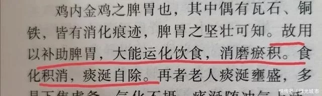 这是鸡内金的消食化积的作用,现在物质丰富,大人小孩都很容易吃多了,积食、消化不良的人特别多,吃点鸡内金就可以好。现在自己在家杀鸡的人少了,要是有,可以把鸡胗上面的皮留下来,晒干磨碎了弄到饭里吃掉。