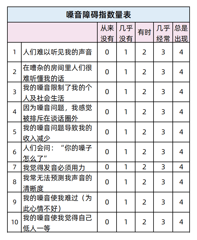 有,有简单版[言语障碍指数量表] 。请根据自己的真实感受回答。如果评分大于11分,可能有语音疾病,需要在医院进一步检查。