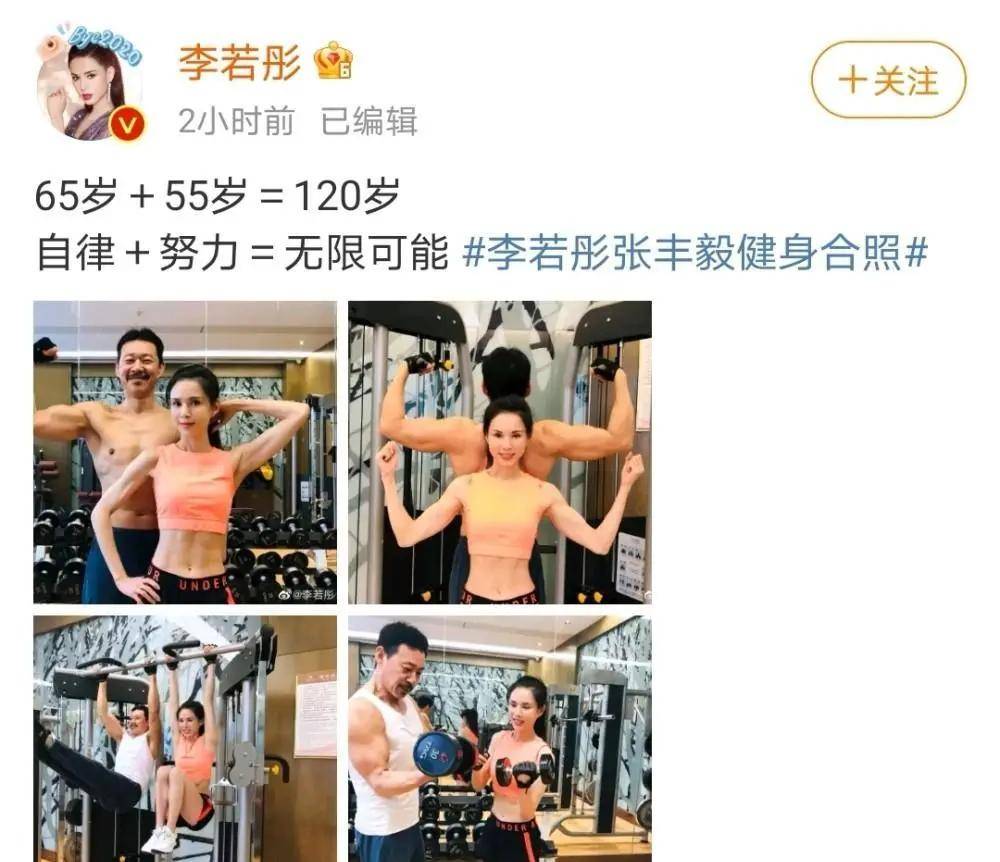 最近,李若彤和张凤仪拍了一张健身照。两人的年龄是120岁。李若彤在文章中写道: